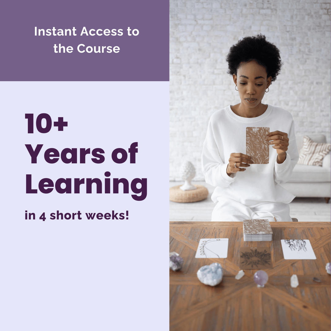 Yes! I WANT you to be able to read tarot like me! My goal is for as many people as possible to be able to use the tarot for guidance, reflection, and support from spirit. That can only happen by empowering others to build a confident relationship with the deck, and to develop their intuitive connection with it. The entire last week of the course is bonuses focused on doing just that!